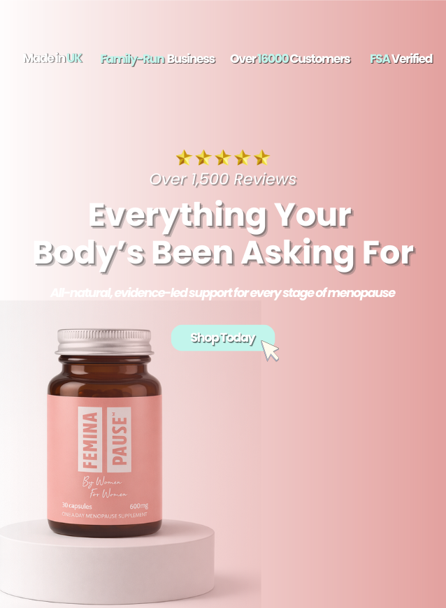 Whether you’re dealing with hot flushes, mood swings, or menopause brain fog, you’re not alone. Feminapause™ is a natural remedy for menopause symptoms — designed to bring relief, clarity, and calm. From perimenopause to postmenopause, our UK-made supplements support your hormones, mind, and mood with ingredients backed by science and trusted by women everywhere.
